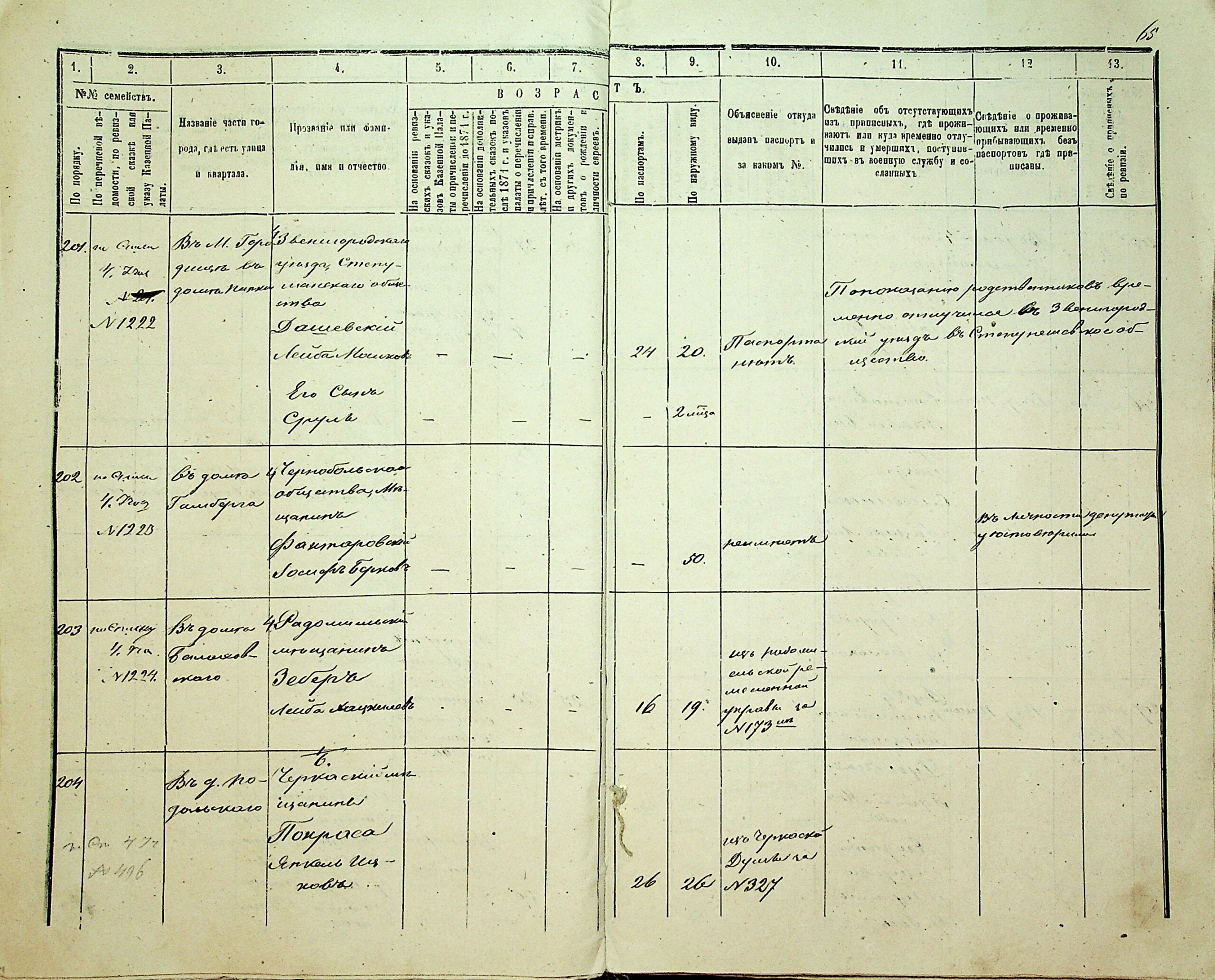 המסמך המעיד על לייב בן משה דשבסקי ומשפחתו ב-6 באפריל 1875 בעיירה הורודישה. החלק שמתייחס ללייב הוא החלק העליון, 201 במספר.