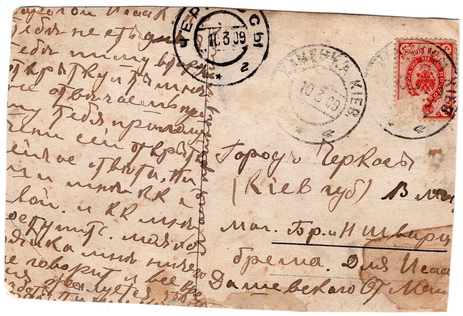 10 במרץ 1909, מכתבו של מ. דשבסקי לאחיו יצחק (יצחק דשבסקי עוד לא נשוי), מקייב לצ’רקאסי:
