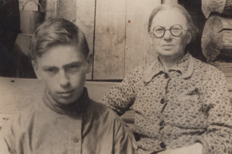 ברטה ולב דשבסקי יושב על מפתן ביתם שבצ’ברקול בזמן מלחמת העולם השנייה, 1943.