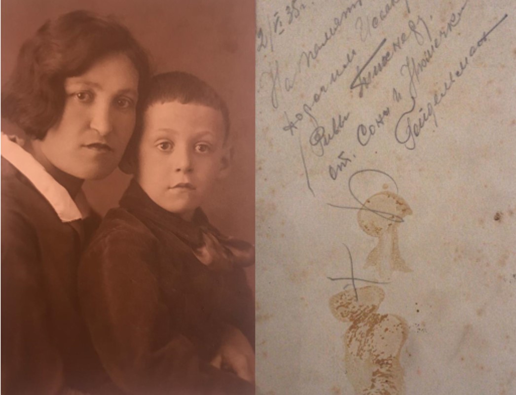 סוניה (שפילפר) גיידלמן ובנה הקטן נאום בשנת 1935.